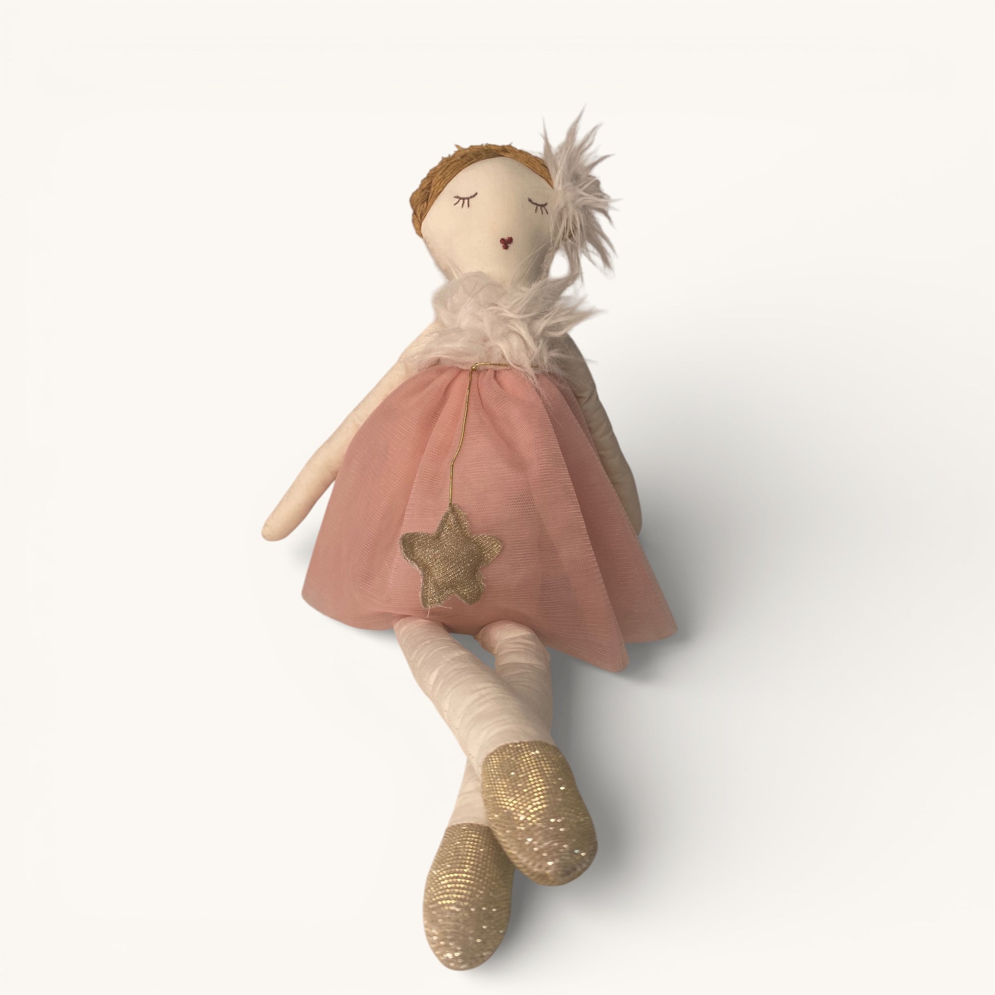 Meet Arabella, a graceful little princess with the sweetest ballet shoes and a sprinkling of golden stars that shimmer gently around her neck. With her soft features and delicate details, Arabella brings a touch of magic to everyday play. She’s made for twirls across the lounge room, quiet story times, and being tucked close at bedtime. Elegant yet endlessly cuddly, she’s a companion who inspires imagination and gentle adventures alike.