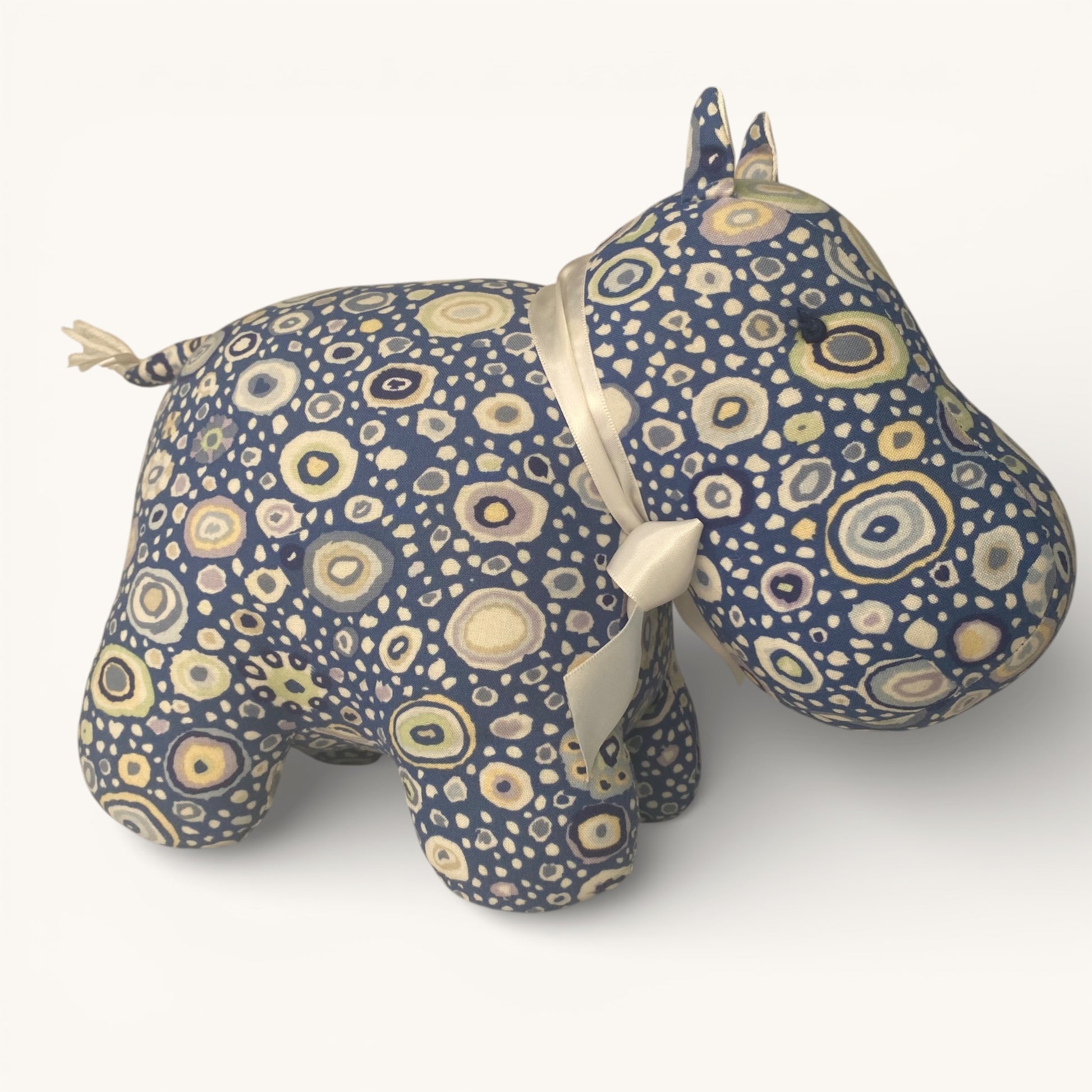 Something that sets me apart: Archie is crafted in Kate Finn’s signature cotton blend with a classic blue patterned finish, giving him a fresh yet heirloom feel. His softly structured body is perfect for cuddles, while his unique rhinoceros design makes him a distinctive addition to any nursery or keepsake collection.