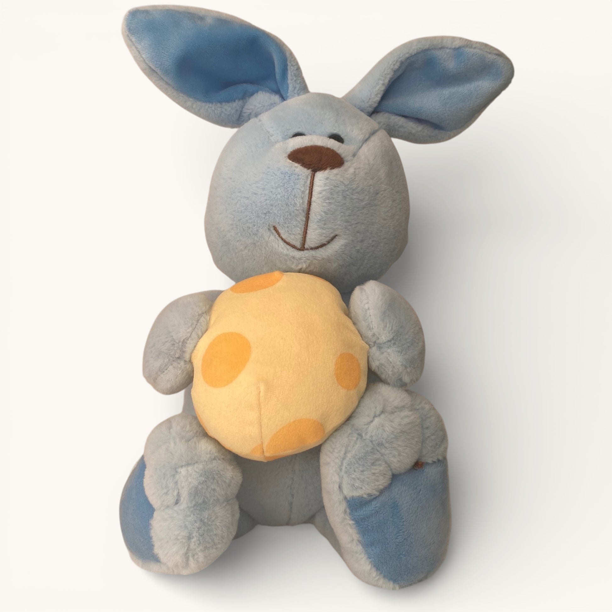 A little something that sets me apart: Bobby clutches a tiny pastel Easter egg, making him the perfect companion for festive celebrations or a special gift. His soft blue fur and floppy ears give him a gentle, approachable charm that’s hard to resist.