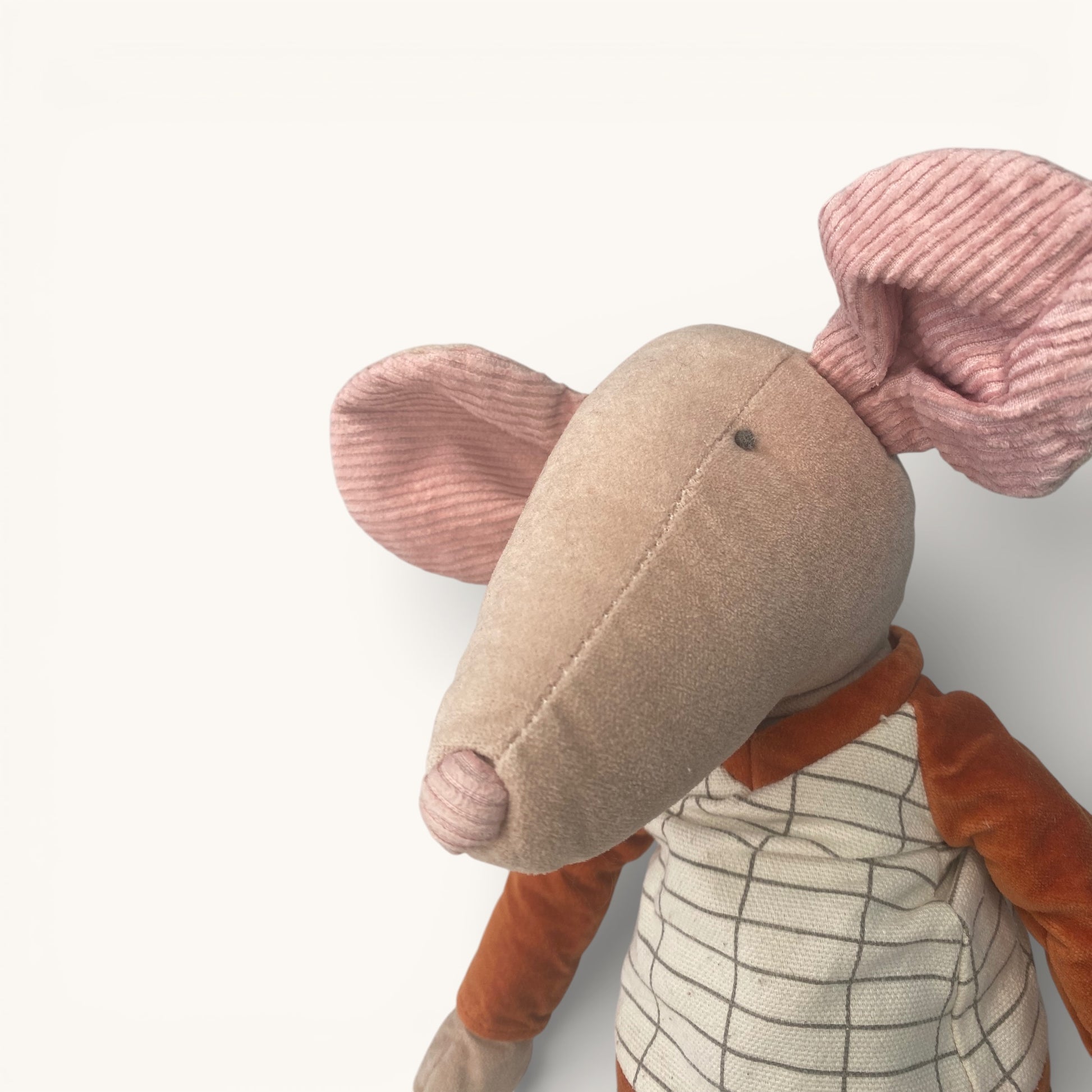 Meet Rolf, with his soft grey fur, little round ears, and charming stitched features, Rolf is more than just a mouse, he’s a loyal companion for quiet moments and playful adventures alike. He loves exploring nooks and crannies, peeking out from pockets, or curling up for gentle snuggles at bedtime. Handcrafted with care, Rolf carries a sense of warmth and curiosity, ready to become a cherished friend for story-time, naps, or just a comforting presence on a shelf. Thoughtful, sweet, and endlessly huggable, he’s a friend to keep close.