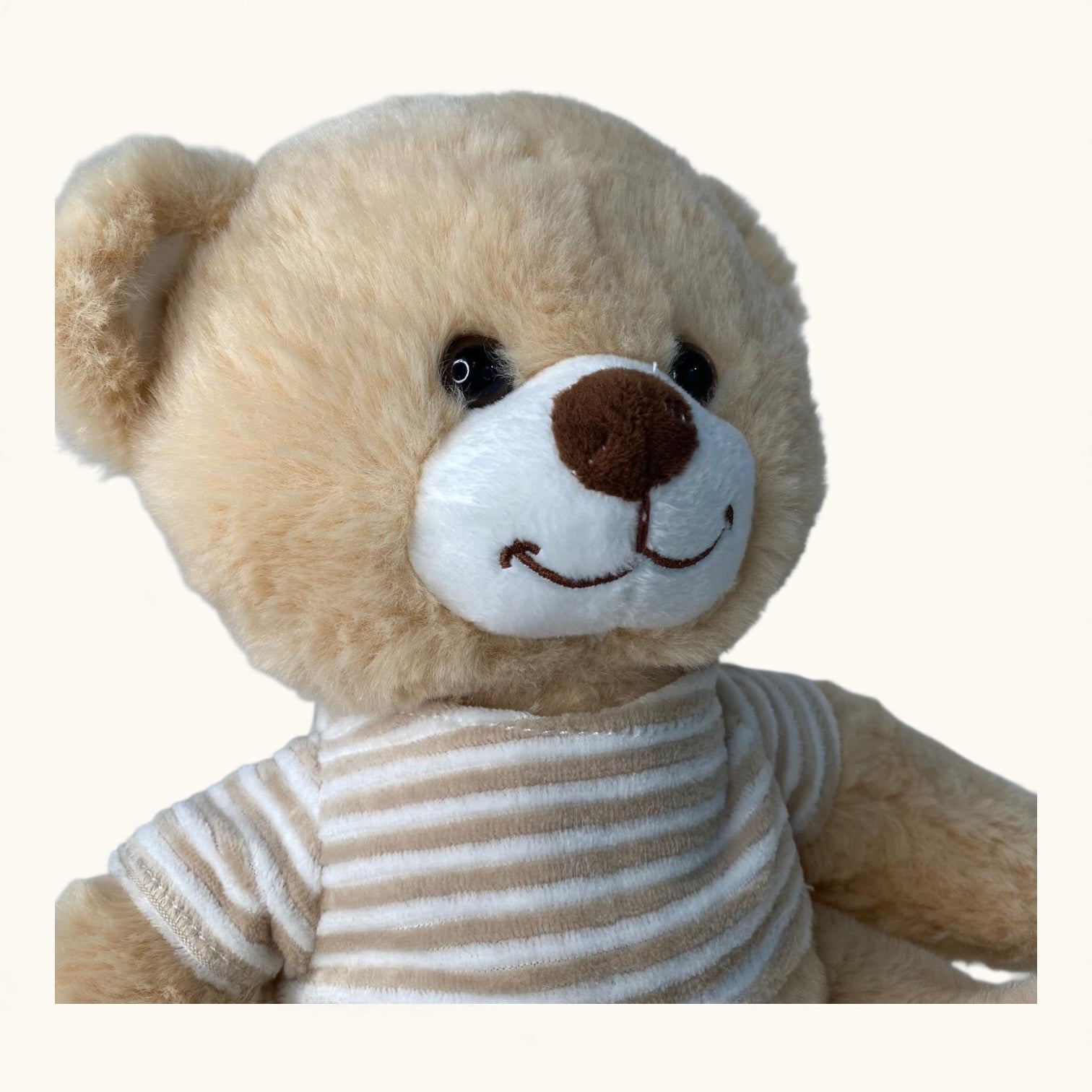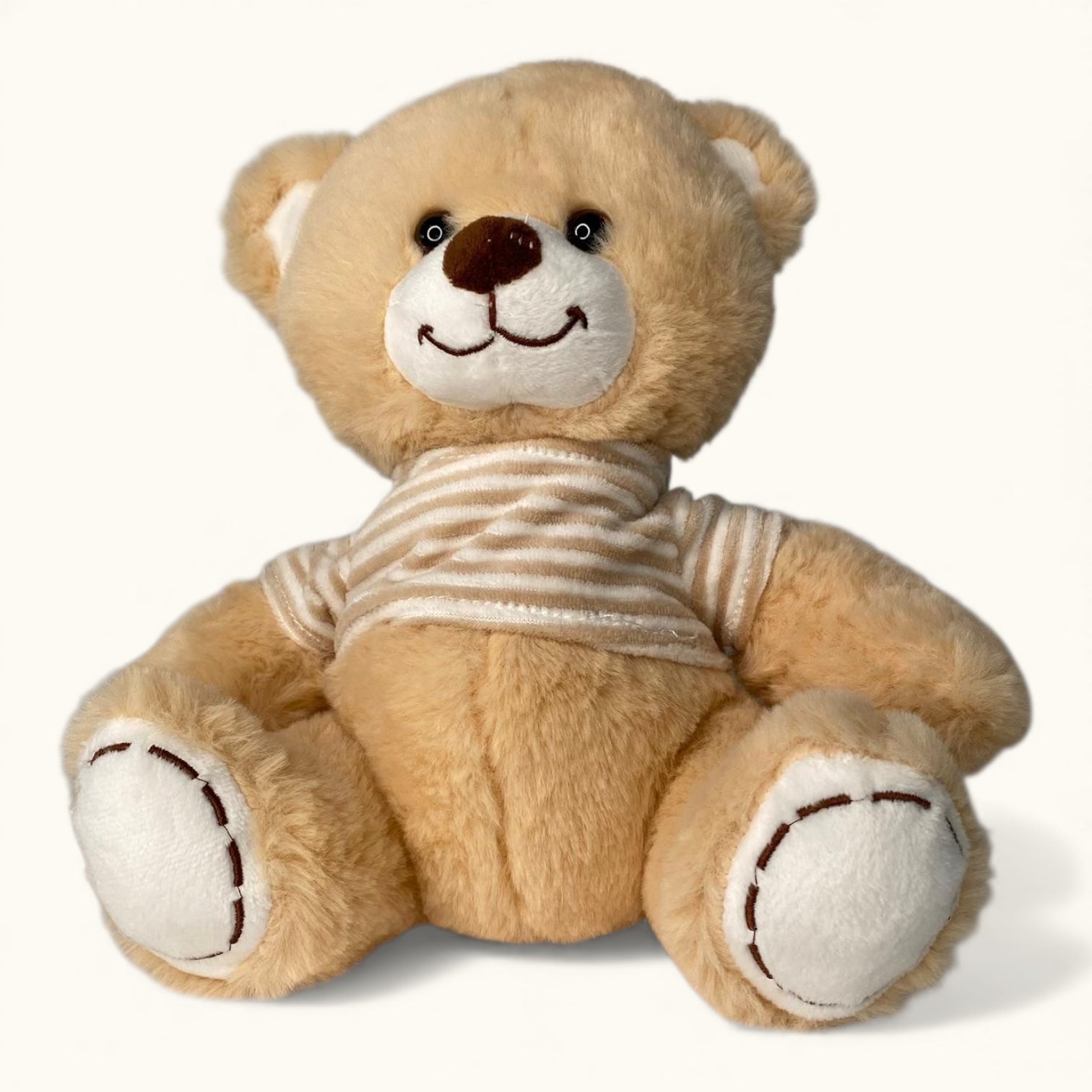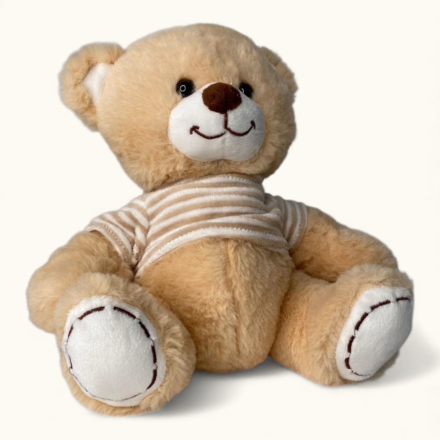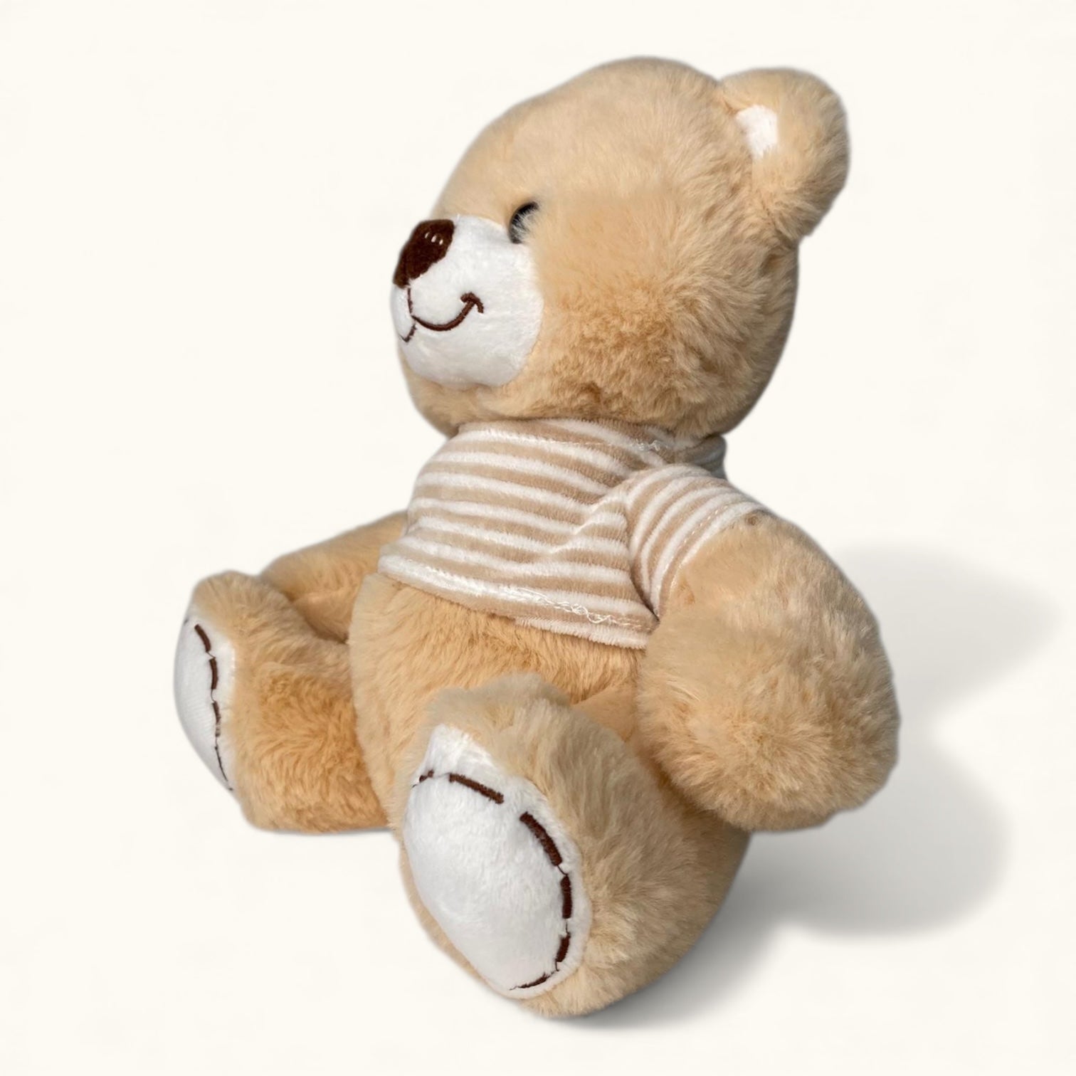 Sir Samson is a warm, classic teddy with a soft golden coat and a friendly stitched smile. His striped tee gives him a sweet, everyday charm that makes him feel instantly at home. Samson loves gentle cuddles, soft lighting, and being part of quiet, cosy spaces. He’s cheerful, soothing, and beautifully simple — the sort of teddy who becomes a favourite without even trying. With his kind eyes and cuddly shape, Sir Samson is a timeless addition to any collection.