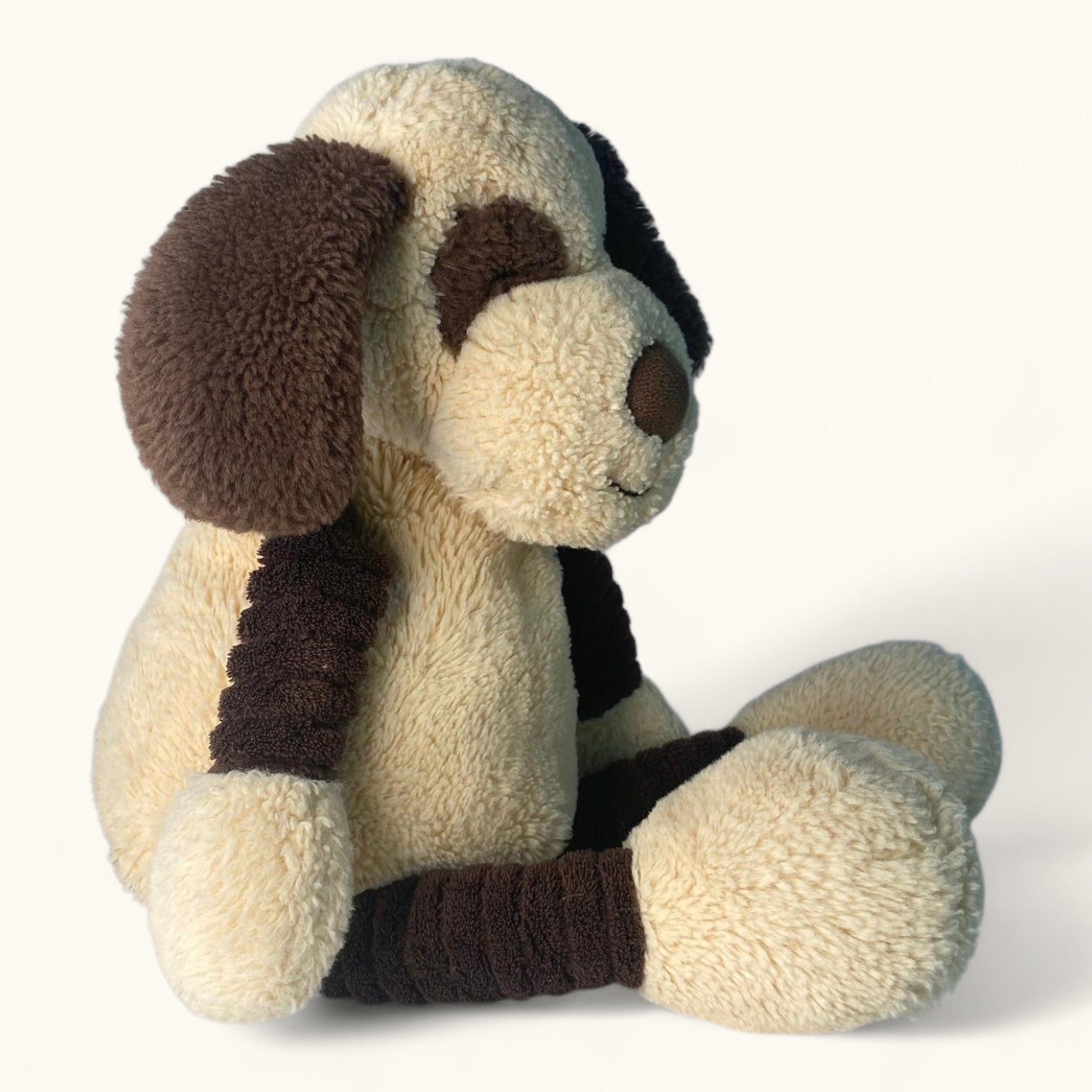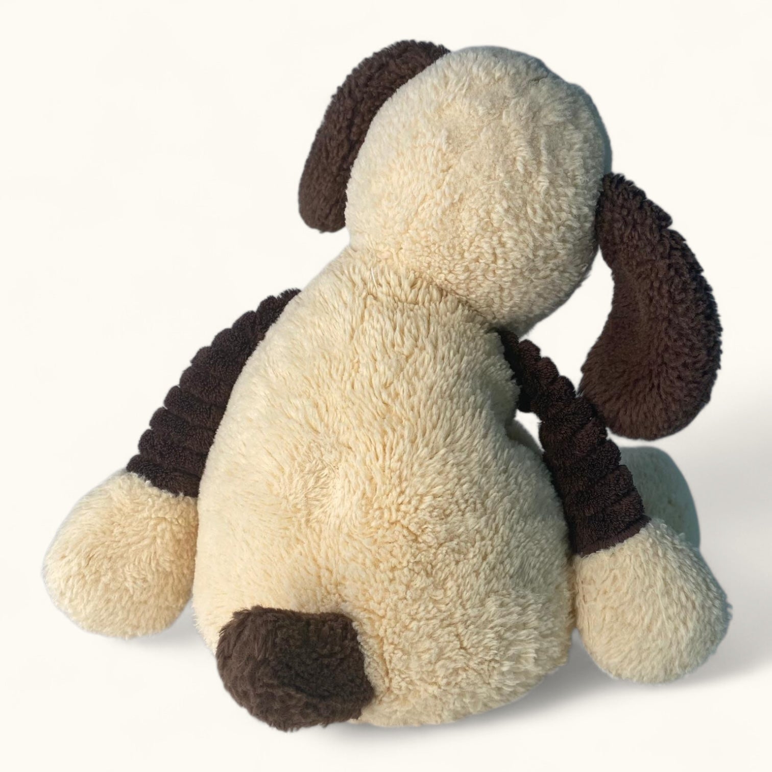 A little something to set me apart: Made from soft beige and chocolate plush with a friendly smile and floppy ears,  warm, classic, and full of character.